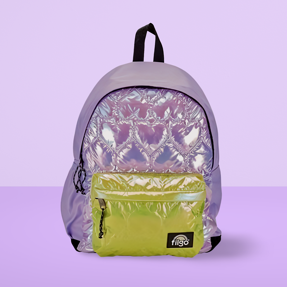 Mochila filgo keiway aesthetic 17¨ /metalaseado violeta pastel/ verde pastel